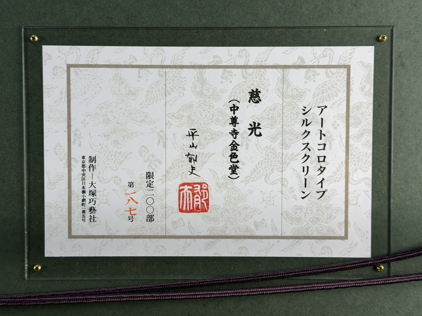 | 作品名 | 「慈光(中尊寺金色堂)」アートコロタイプ |